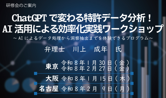 只今、「ChatGPTで変わる特許データ分析」ワークショップを各地で開催しています。