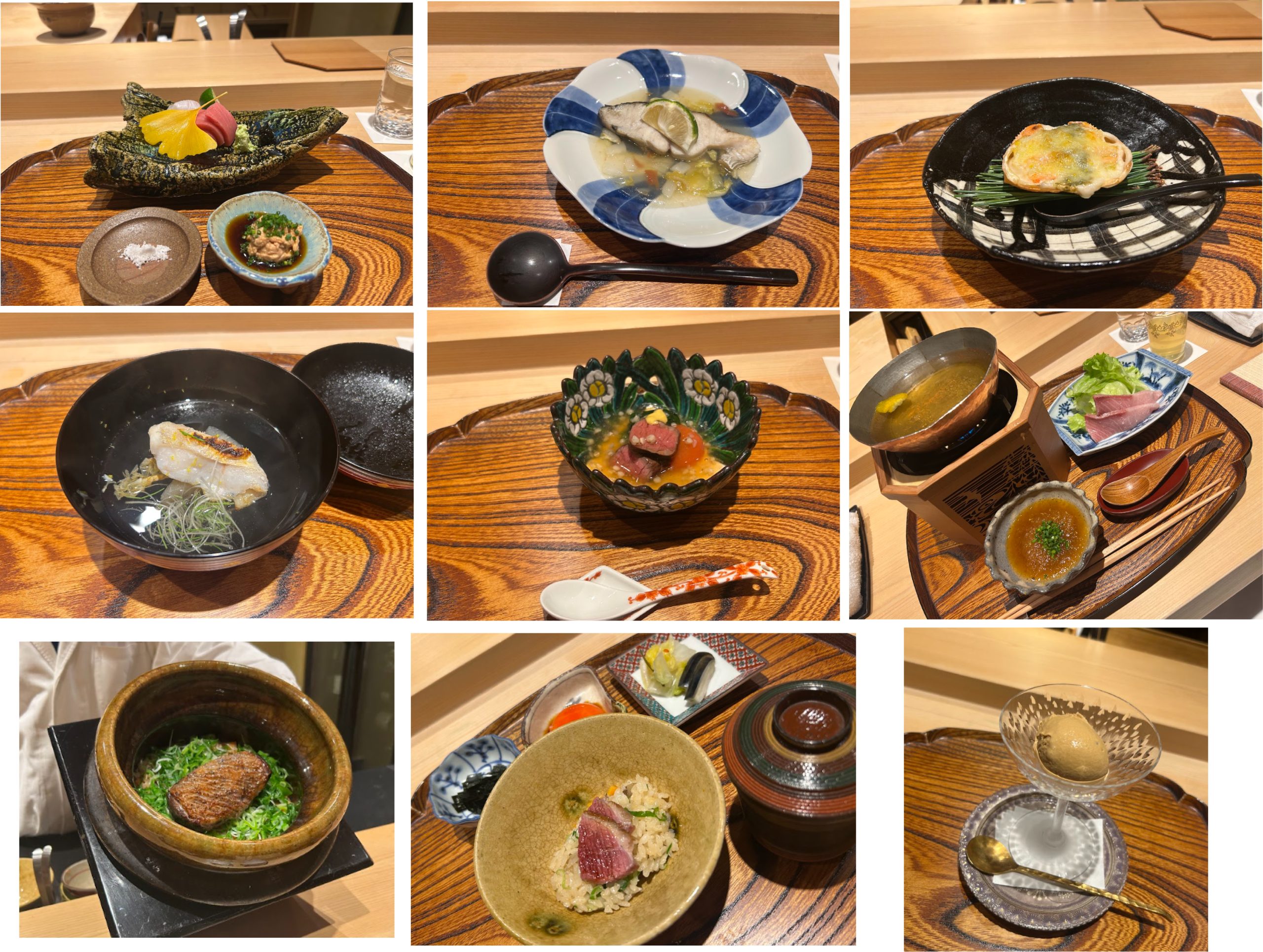 店内は一枚板のカウンターのみの落ち着いた空間。限られた席数ながらも、窮屈さを感じさせない開放感があり、料理人の所作を間近に感じながら食事を楽しむことができます。提供されるのは、10品前後で構成されるおまかせのコース料理。本格的な冬を迎え始めたこの日は、蟹をはじめとする季節の味覚や恒例の牛肉料理を存分に堪能しました。